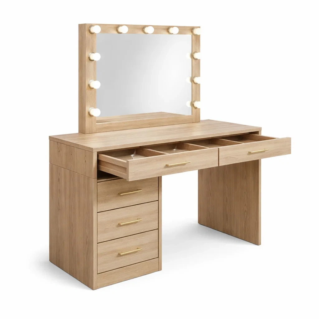 Schminktisch aus Holz Eiche mit LED Spiegel