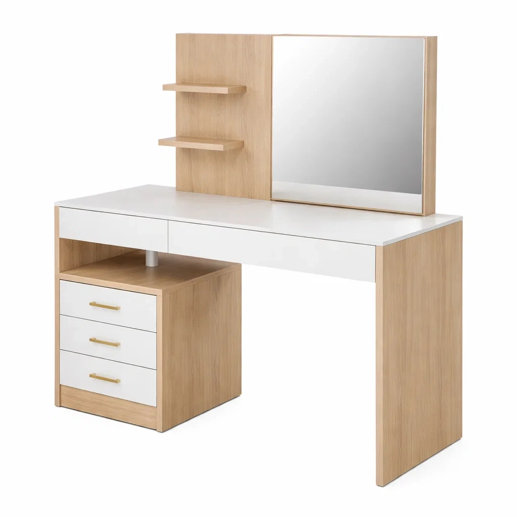 Schminktisch aus Eichenfurnier und Weiß mit Spiegel und Schubladen