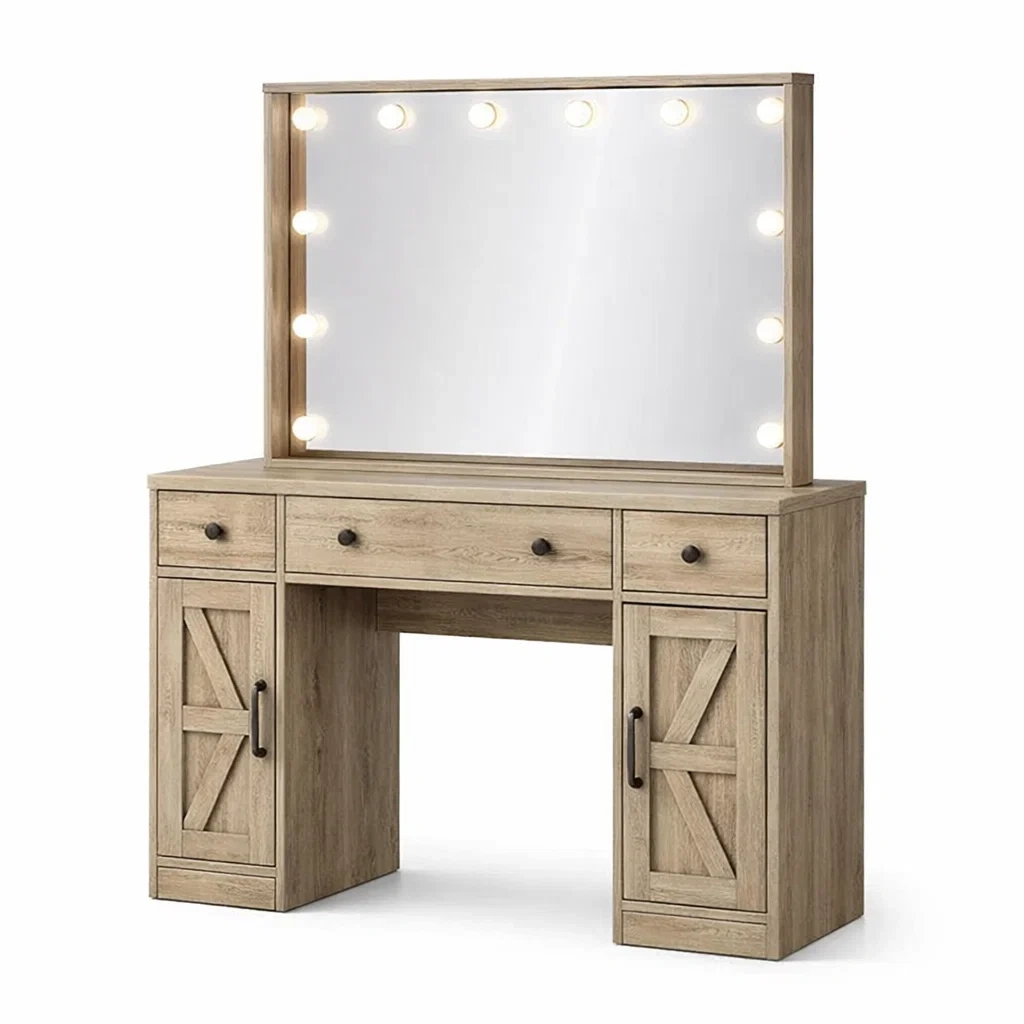 Schminktisch aus Holz Eiche mit Spiegel und LED Beleuchtung