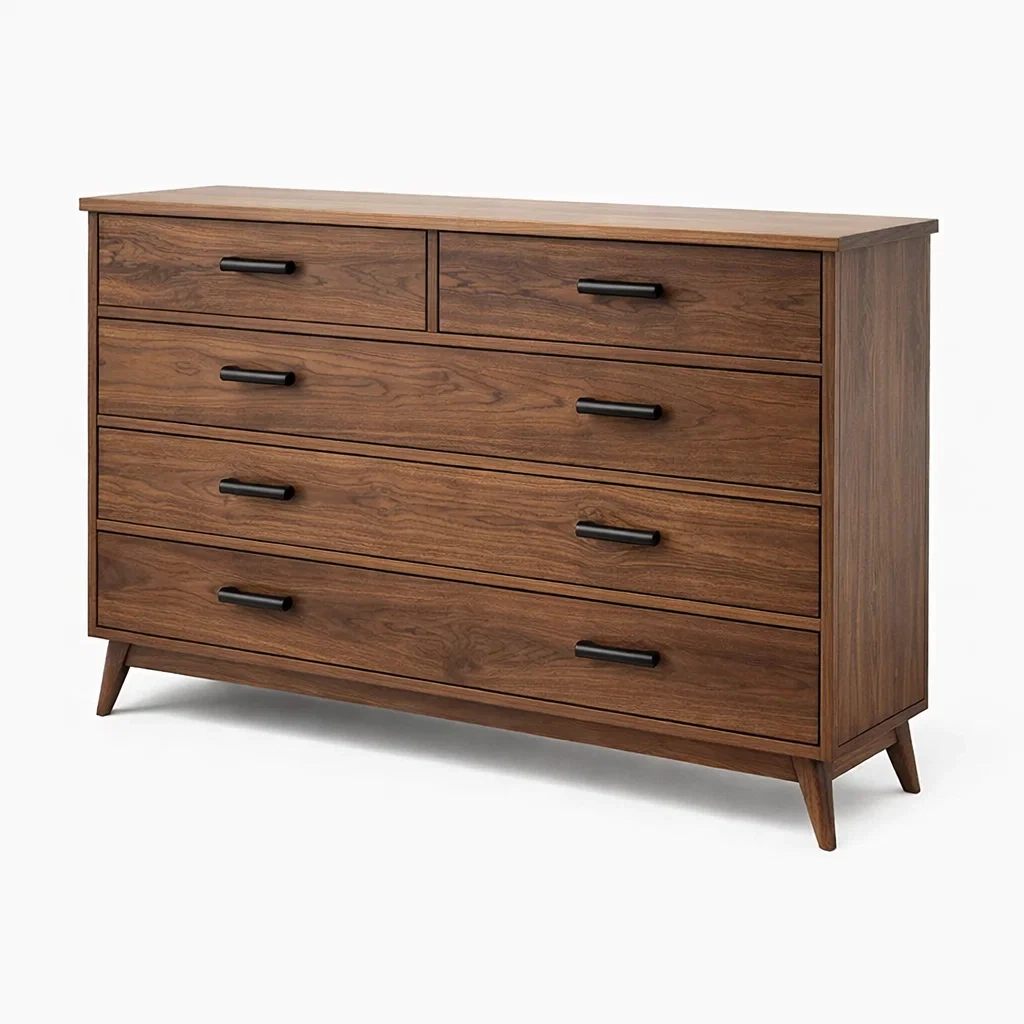 Schubladenschrank aus Holz mit Walnussfurnier Braun mit fünf Schubladen