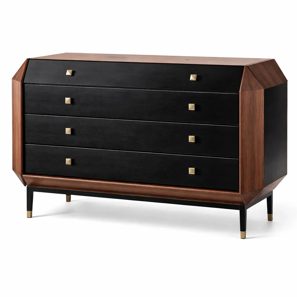 Schubladenschrank aus Holz und Metall Schwarz Walnuss mit vier Schubladen