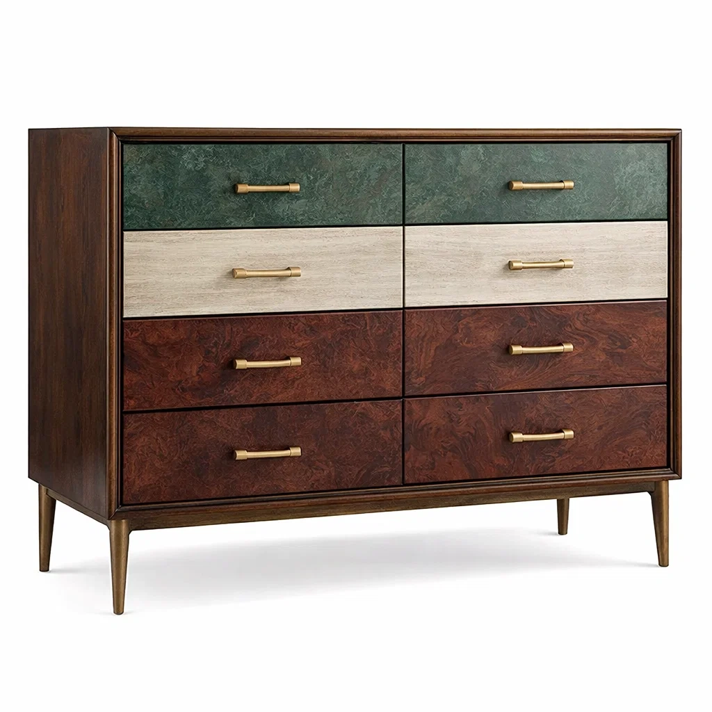 Schubladenschrank aus Walnuss mit sechs Schubladen