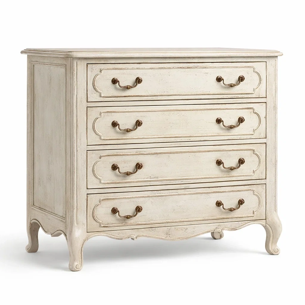 Schubladenschrank aus Massivholz Cremeweiß mit vier Schubladen