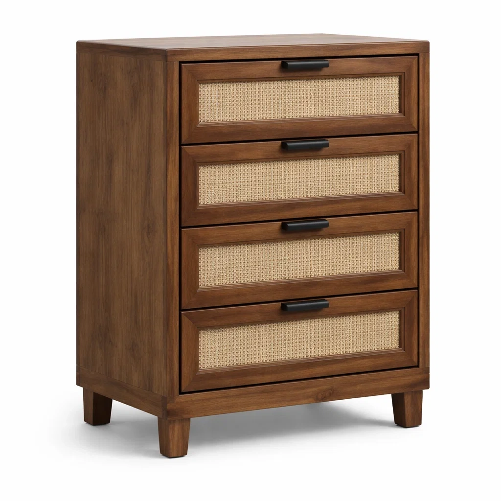 Schubladenschrank aus Holz mit Rattan Schubladen mit vier Schubladen